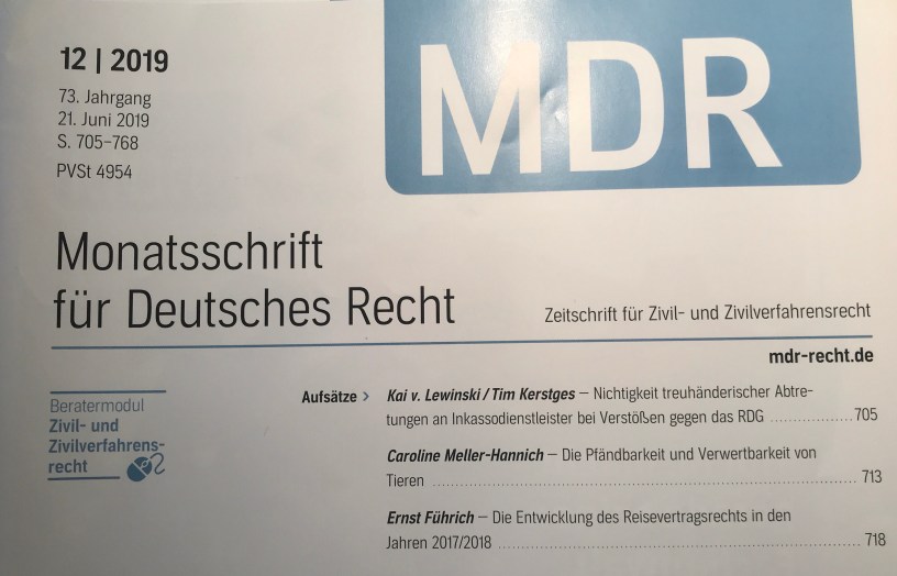 Der Beitrag von Prof. Dr. Ernst Führich in der juristischen Fachzeitschrift Monatsschrift für Deutsches Recht (MDR) schließt an seinen Bericht in MDR 2016, 857 an und stellt die deutsche, unionsrechtliche und internationale Entwicklung des Luftbeförderungsrechts in der Rechtsprechung des BGH, EuGH sowie ausgewählter Instanzgerichte bis zum Jahr 2018 dar.