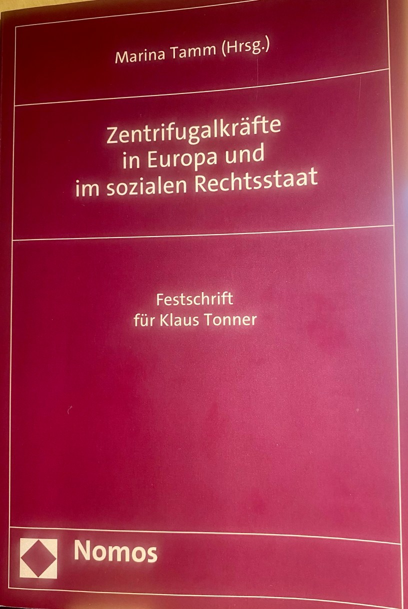 Zu Ehren des Jubilars würdigten wir Klaus Tonner mit einer bemerkenswerten Festschrift „Zentrifugalkräfte in Europa und im sozialen Rechtsstaat“. Die Festschrift wurde von Professorin Dr. Marina Tamm herausgegeben.