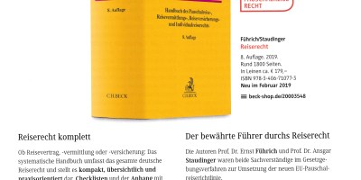 Führich Aufsatz, FluggastrechteVO, Internationales Privatrecht IPR, Kemptener Reisemängeltabelle, Luftrecht, Meine Bücher, Montrealer Übereinkommen, Neue Pauschalreise-Richtlinie, Pauschalreise, Reiserecht, Reisevermittlung, Reiseversicherung, Wettbewerbsrecht